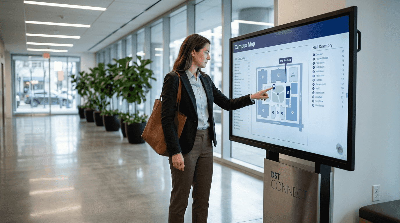 Our comprehensive IT instructions guide your team through network setup, screen configuration, and content deployment. You’ll have interactive displays running in hours, not weeks. Whether you’re deploying wayfinding in a hospital, product discovery in retail, or employee communications in corporate environments, DST Connect provides the tools and support to succeed.